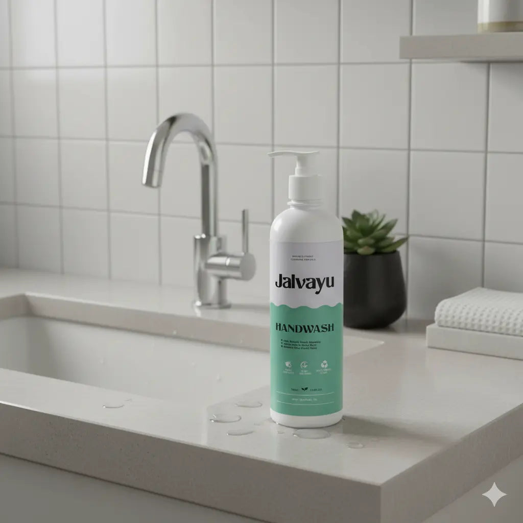 Experience the freshness of nature in every wash with Jalvayu Mint Handwash — a plant-based, bio-enzyme-powered formula crafted to cleanse, protect, and care for your hands without harsh chemicals.